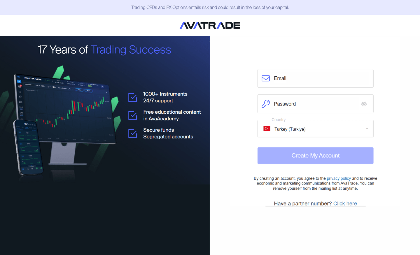 Trading koşullarına gelince AvaTrade rekabetçi komisyonları ve özellikle vadeli işlemler (1:200) ve opsiyonlar (1:100) konusunda yüksek kaldıraç ile tanınır.