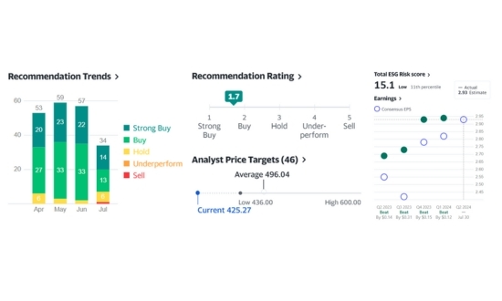 Yahoo Finance'a göre, 44 uzmanın değerlendirmeleri "Agresif Alım" ve "Normal Alım" arasında yoğunlaşmış durumda.Çoğunlukla alım yönünde olan bu değerlendirmeler, Microsoft hisselerinin mevcut piyasa fiyatının üzerinde bir potansiyele sahip olduğunu gösteriyor.